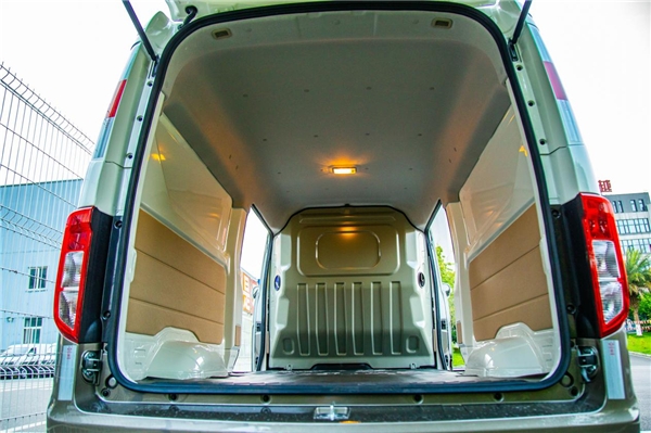 最后让我们聚焦货车最关键的卖点——空间。长安跨越星V5整车尺寸长4495mm,宽1680mm,高1990mm。如何在保障微面车型良好通过性、灵活性的前提下,增加可利用空间,跨越星V5的的设计师们想出了绝佳的处理办法。不同于市面上大多数货运车辆,在收窄顶部和尾部的设计方面,跨越星V5顶部和尾部尽可能保证了厢体部分方正平直。如此一来,更有效地拓展了内部空间,实测装载空间高达到5.48m³,在同级车型中首屈一指,运载能力直逼小卡。