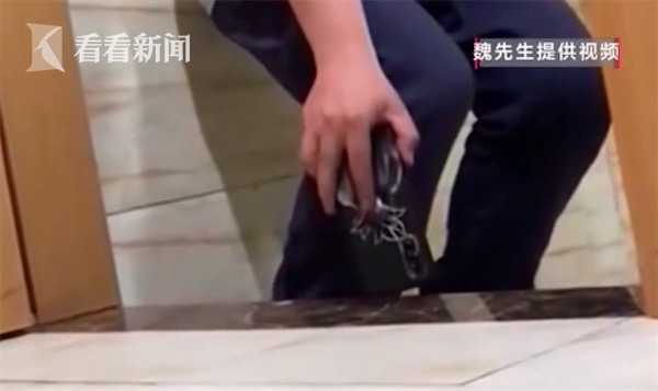 魏先生表示:“回来了以后同事就说厕所里面好像还有人的,冲了两次水都没有出来,然后我们就在门口守着,等他出来之后我就把他和视频上的人做了对比,确定这个人就是偷拍的人,然后我就先把他控制住了。”