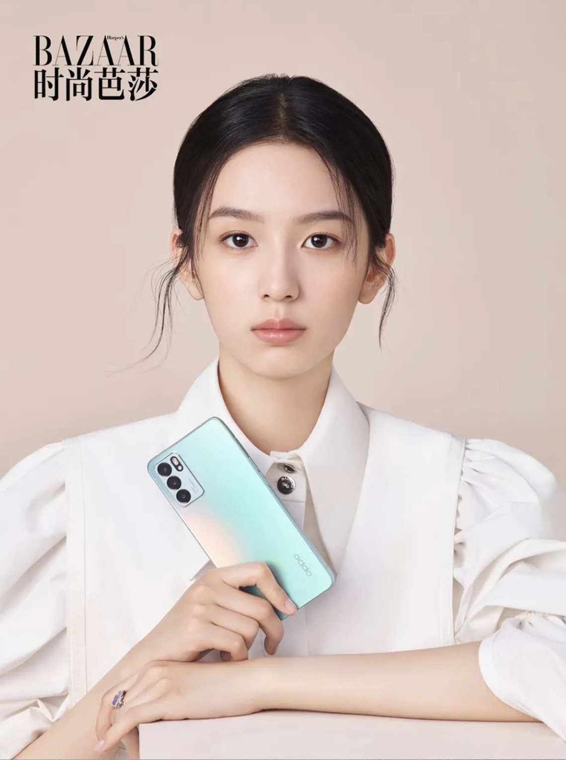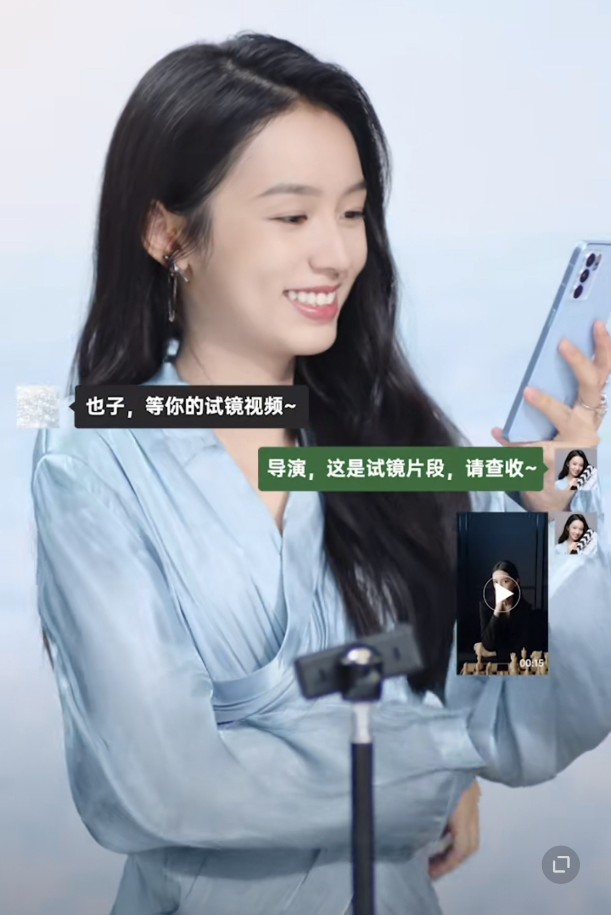 为最近的爆款手机OPPO Reno6系列打Call的周也,已经把“AI焕采美妆”功能亲自评测过了,用纯素颜一次性解锁了夏日晴海、猫眼、裸感妆容,再精心拍成不同角色的试镜小视频,发给导演来了一次“云试镜”。