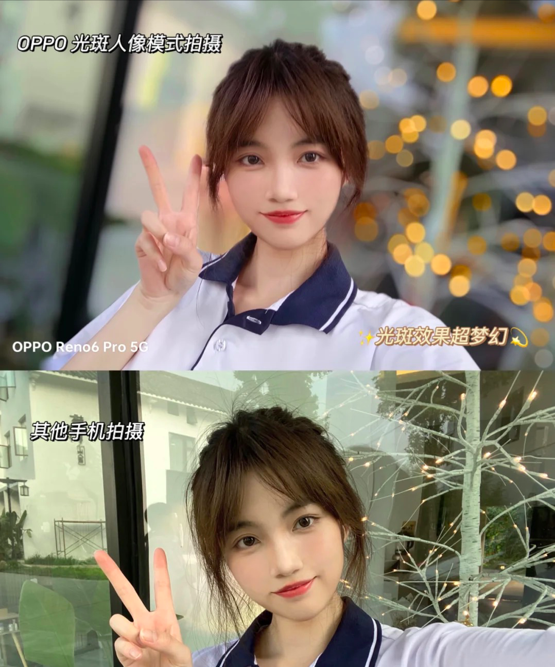 其实也没有很麻烦,对于Reno6系列来说,一个“焕采光斑人像”功能足够解决所有,哪怕是在复杂凌乱的背景下,它也能将人像智能识别并锁定,再和背景实时分离,从而将背景实时虚化成自然的光斑,借助斑斓的光影营造出浪漫的氛围,都能传递一些令人心动的情绪,和其它手机的拍摄简直不要太明显。