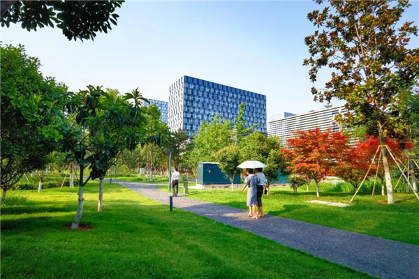 “现在这里配套越来越齐全了,吃的逛的全都有,园区绿化也做得非常好。”李女士中午吃完饭和朋友在中央绿廊散步,中央商务区这片小天地,如今成为了她与同事休闲放松的好去处。