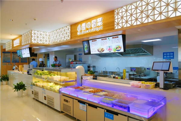 “给我来一份排骨砂锅”“我要一个肉夹馍”“麻烦帮忙把桌子收拾一下”……中午时分,能源金贸区中央商务区的西咸·沣味餐厅内,来就餐的顾客络绎不绝,取餐窗口服务员忙得不可开交。
