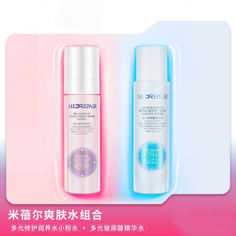 米蓓尔是华熙生物旗下的品牌(就是那个把玻尿酸买到全球NO.1的华熙生物),大厂出品实力杠杠滴!米蓓尔修护水有粉绿两款,绿色的更清爽更适合油皮、粉水更滋润适合干皮,但我还是喜欢粉水一点,成分比较得劲。