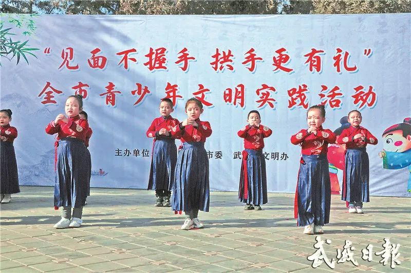 大力推广普及“拱手礼”,开展“行拱手礼·做文明人·创文明城”新时代文明实践主题活动,以务实举措倡导文明健康的社交方式,彰显凉州文化深厚内涵、提升武威文明城市形象。