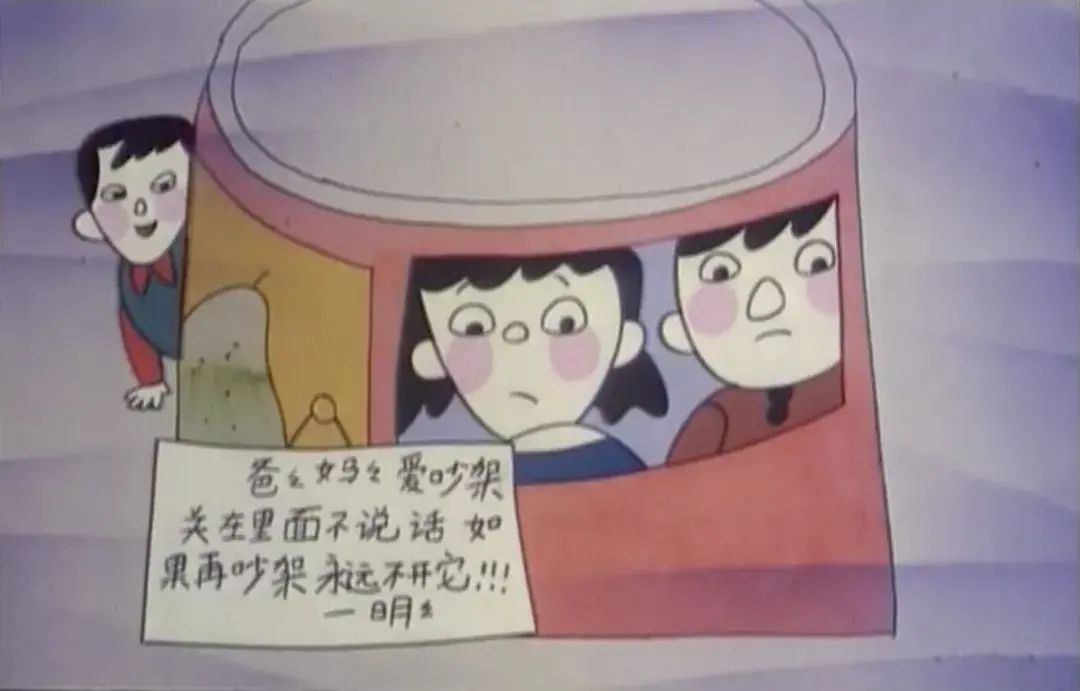 △ 《魔方大厦》第二集,明明把爱吵架的爸妈装在罐头里。