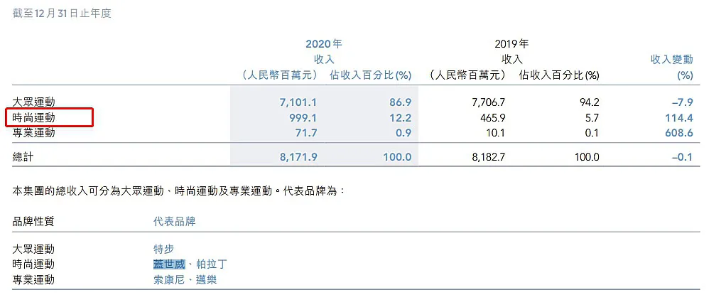 2020财年,两大品牌代表的时尚运动品类收入9.99亿元,同比逆势大增114.4%,占集团总收入的12.2%。