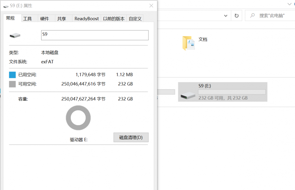 我手里的是256GB的版本,售价为369元。电脑显示实际可用空间为232GB,这是一个正常水准。