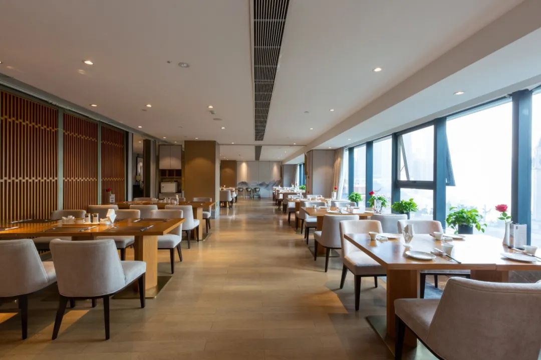 入住期间的早餐,我们在公寓的程府宴餐厅享用,舒适的用餐区域,宾客可以坐在靠窗位置,在享受美食的同时,还能欣赏窗外美丽的景致。