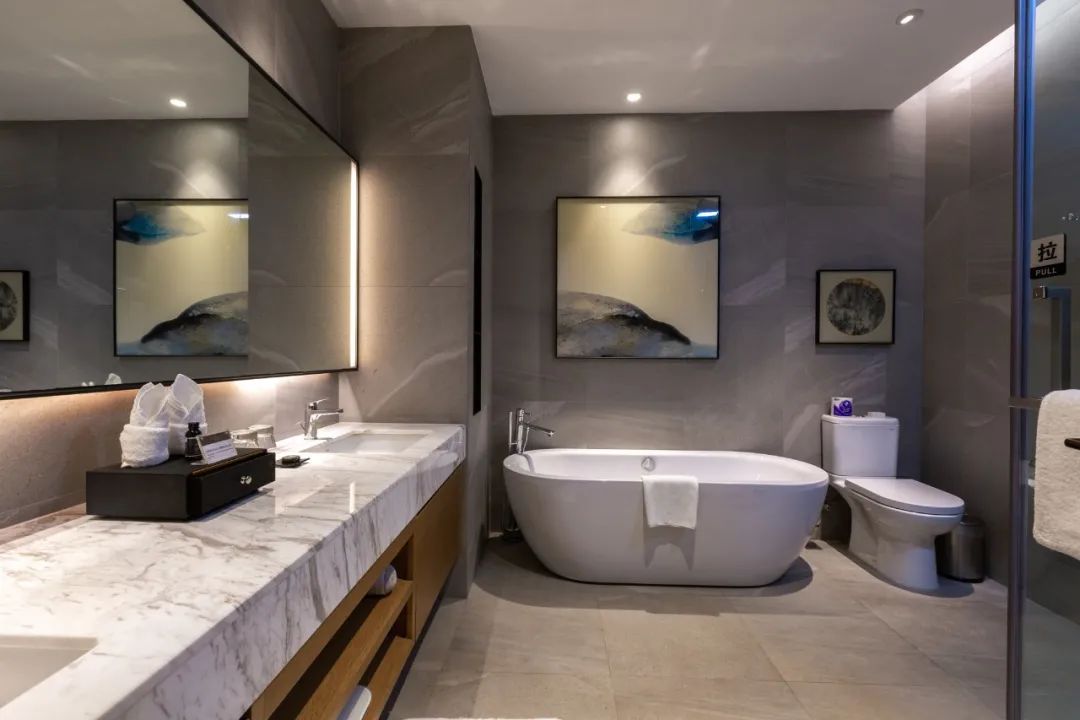 主卧配备有2米*2米大床,并采用舒适的床垫,主卧有独立的卫生间,并且配备有宽大的浴缸,游玩了一天,晚上泡个热水澡,想必是最舒适的体验了。
