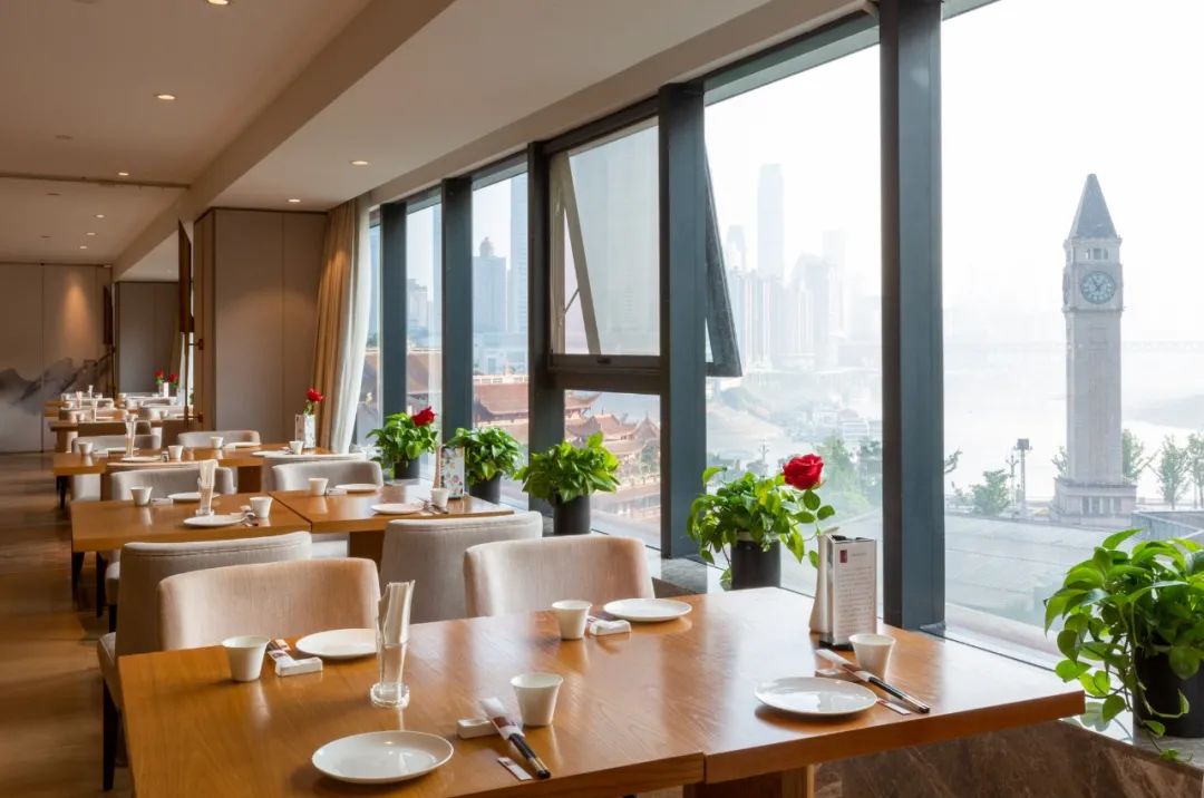 270度的环绕的落地窗,将窗外两江交汇的壮美景观一览无遗。夜幕降临,华灯初上,整座城市的最美的景观尽在眼前。