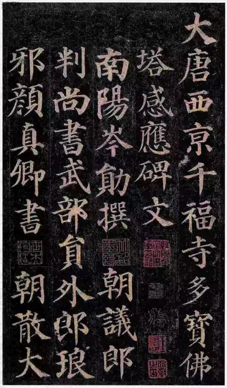 作为颜早期的成名作,承二王、欧、虞、褚的余风,整篇结构严密,字行间有乌丝栏界格,点画圆整,端庄雅致,一撇一捺显得静中有动,飘然欲仙,学颜体者多从此碑人手。