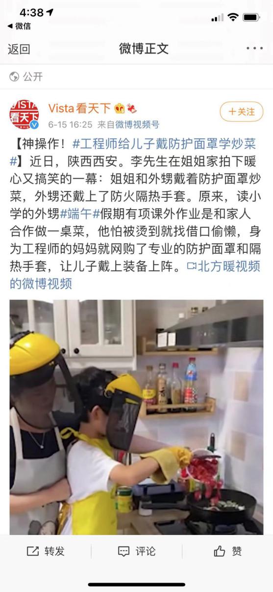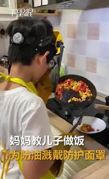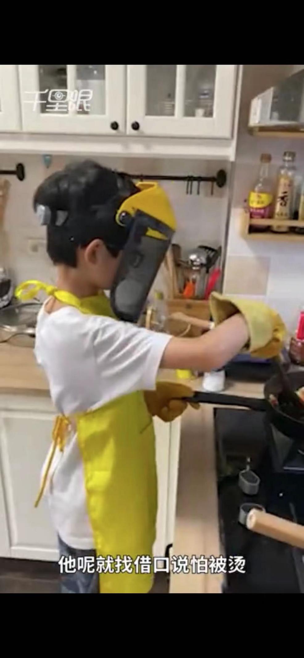 @泰禾子:戴防护面罩炒菜这也太可爱了叭,不过这样尽心尽力的家长真不错