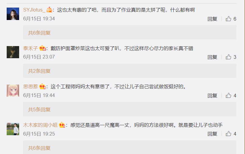 原来这位妈妈是一个长期在工业环境中工作的工程师,厨房这点小火、小油烟算什么,在工程师妈妈眼里都是再平常不过的“危险环境”。这么神奇的一次课外作业体验,很多网友都表示喜感十足的同时又觉得非常“硬核”专业。