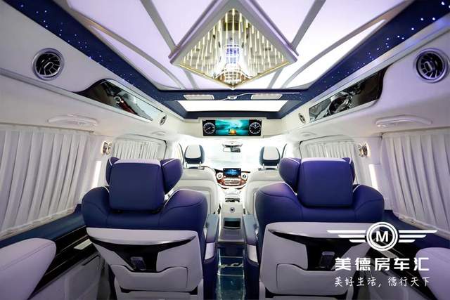 高档的配置让视觉感受更上一层,高档皮质搭配高光泽木纹饰板包覆内舱,高品质隐私窗帘,打造绝佳的内部环境,与氛围灯多种灯光模式相互衬托,浪漫星空顶点缀,营造出令人难忘的绝妙体验。