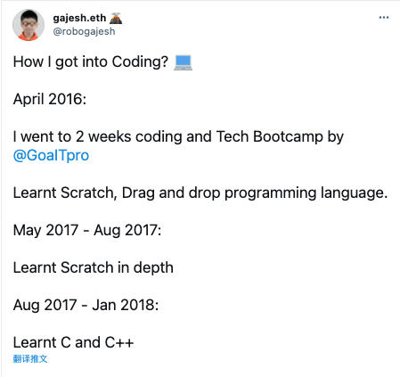 自古英雄出少年,与北大韦神一样,Gajesh Naik的人生也是一路开挂。据Gajesh Naik推特自己叙述道: