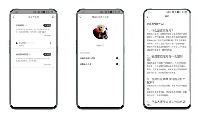 在去年以前,同一辆电动车只能车主APP可以控制,但现在九号推出了家庭账号系统,每辆车均可创建3个家庭账号;⻋主能够授权多个家庭账号成员共同使⽤⻋辆,全家⼈都能够使⽤接近解锁。