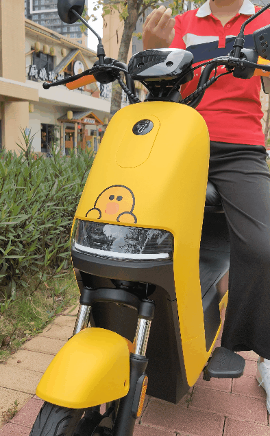 九号电动车A40莎莉合作款作为A系列的一员,自然是继承了A系列的全部特性,同时在外观上更是直接与莎莉IP合作定制,颜值更上一层楼。普通款A40仅有初雪白灰、烈岩红灰和狂野灰绿三种配色,我手上的这款莎莉合作款官方称之为“莎莉黄”,机身通过黑色与黄色撞色设计,同时在显眼位置印刷有“莎莉”可爱图案,让A40变成一辆极具个性的电动车,再严肃的成年人都会忍不住童心大发想要骑出去兜兜风,更别说女生了。