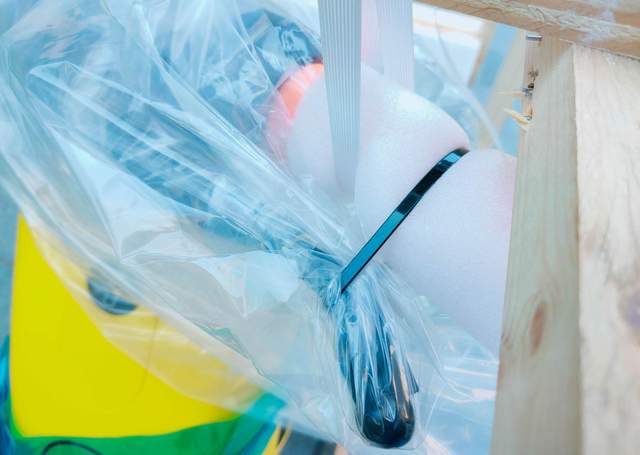 前后刹车被绑带锁死,进一步防止运输过程中溜车,再加上前后轮胎被固定,可以说九号电动车A40莎莉合作款“插翅难逃”。