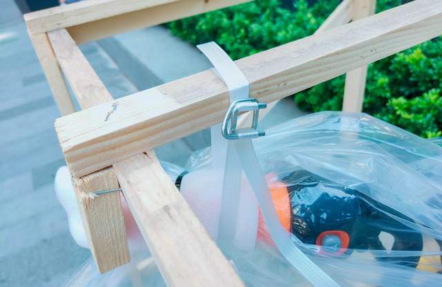 除了前后轮被固定外,龙头、车身的座椅和踏板也被固定,但考虑到座椅和踏板是软装和塑料件,容易被木架划伤,所以这两处的固定均作了充分保护,座椅软装用了整块定制的缓冲泡沫固定,坐垫部分亦是如此。
