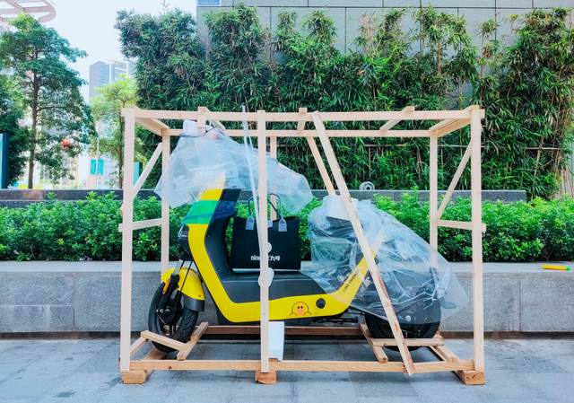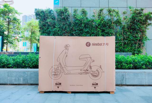 瓦楞纸外包装仅仅只是起到一个美观作用,拆去外包装便能看到“困在”木架中的“小电炉”。整车被塑料袋包裹着,能有效防止车身沾染灰尘。九号这是让自己的每一位孩子都能给新“主人”留下一个好印象。