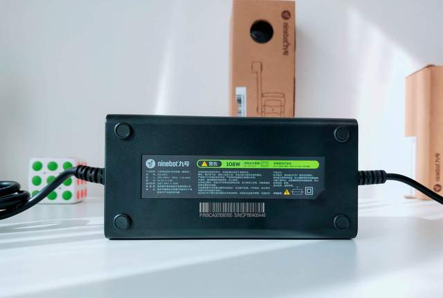 为保证足够的充电功率和散热,九号电动车A40莎莉合作款的锂电池充电器体积并不算小,输出功率为54.2V/2.0A,官方宣称为108w,相比B90的160w充电功率要小一些。