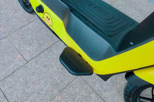 九号电动车A40莎莉合作款还附赠有一对踏板,让我们在骑行时双脚有了更多选择,既可以放在电池仓上方,也可以放在踏板上。