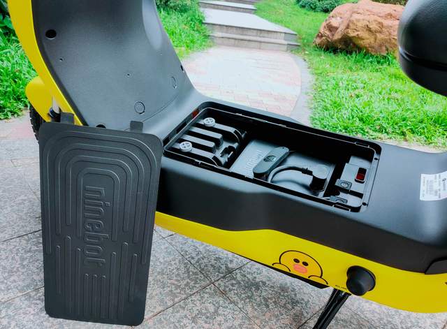 通过组合按键或者物理钥匙便可打开电池仓上盖,锂电池组便静静地躺在里面。看到这里相信部分小伙伴已经发现这样的设计下雨时电池仓有进水的危险,对此大家不用担心,电池仓上盖做了一定的密封设计,即使真的进水,锂电池组也有一定的防水特性(IPX7),不用担心机车雨天骑行或者以为淋浴(整车IPX5标准)。
