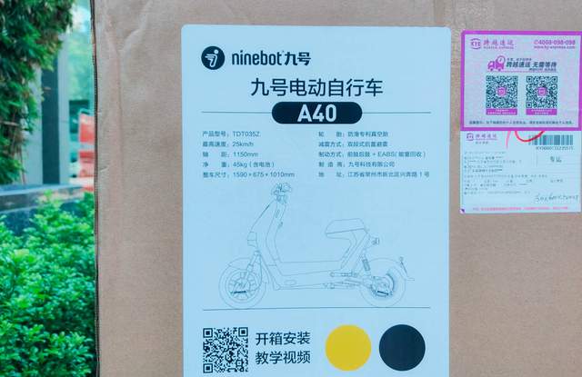 两轮电动车说大不大、说小不小,但线上购买基本都会采用打木架的方式发货,九号电动车A40莎莉合作款也不例外,只需要提前和物流派送师傅约好时间即可。有了B90的开箱经验,在师傅到达我家楼下后迅速带上家伙事(锤子、扳手、木工刀等工具)下楼签收。