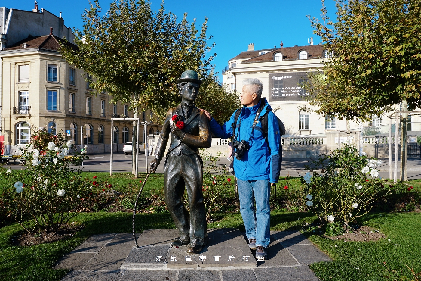 沃韦的第三个亮点自然就是喜剧大师卓别林了,这里是他最后的养老地——他在这里居住了25年,1977年在此离世。为了纪念卓别林,当地为他在湖边立了一座与真人等高的塑像,摆着他最经典的pose。