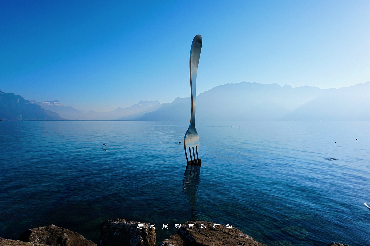 沃韦之旅,没有人会错过莱芒湖的风光,而沿着湖畔步行,就一定会看到那把巨型的大叉子,就那么直不愣登地杵在湖中央,在天蓝水兰的背景前独自美丽闪闪发光。