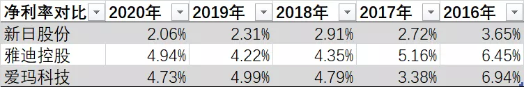 显然,爱玛科技的毛利率是低于竞争对手及行业平均的。那公司净利率水平对比竞争对手及行业又如何呢?