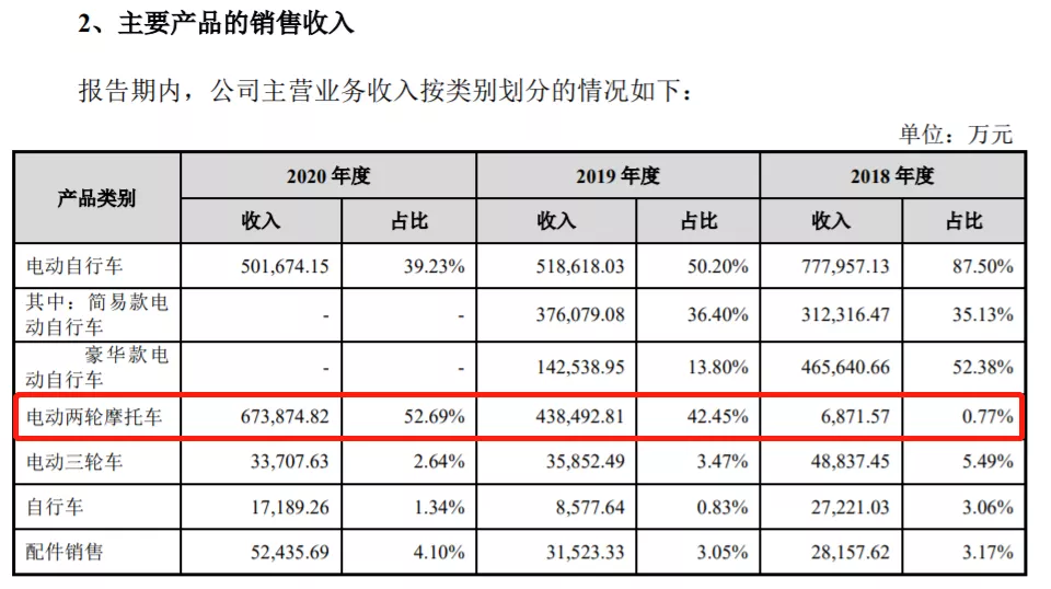2018年爱玛科技到底有没有销售电动两轮摩托车难道公司自己都不清楚?而2020年电动两轮摩托车更是成为公司绝对核心业务,收入占比超过52%!