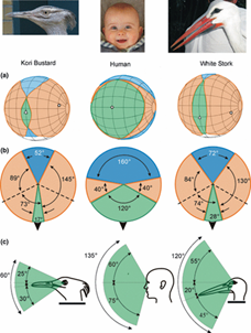 科里鸨、人类和白鹳的视野差异 | Martin G R.
