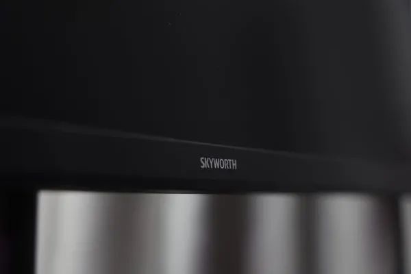 正面除屏幕外的视觉元素集中于底边,包括位于中部的创维Logo和右侧底部控制按钮的标识,同时底边采用深色拉丝工艺纹路,提升整体设计格调的同时不至于喧宾夺主。