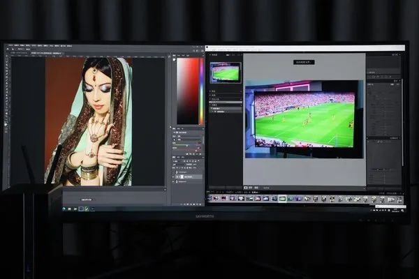 创维F34G4Q的双设备同时接入能力同样可以通过PBP(双屏)模式来展现,两台PC设备信号同时接入时将宽幅画面一分为二,轻松应对多种办公/娱乐协同需求。