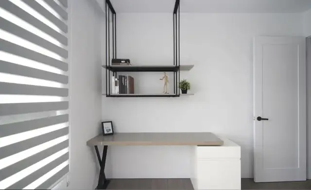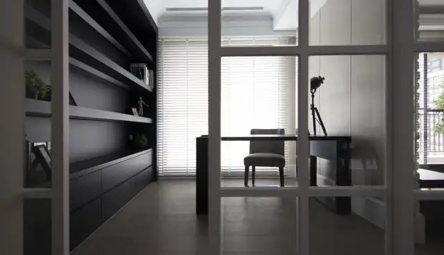 书房空间以沉稳的黑色为主,描绘出内敛让人静心阅读工作的绝佳空间。用白色和暖色营造一个清新明亮的客厅空间。