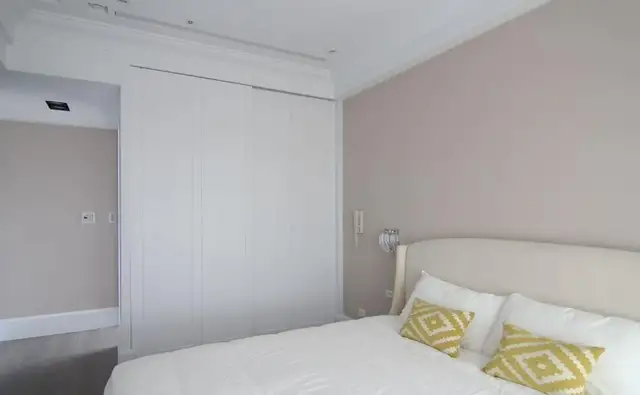 私人居住空间注重舒适,装饰线板天花,散发出优雅的感觉,暖色墙面带有温润柔和的气息,没有过多复杂的设计,成为理想的完美舒眠环境;