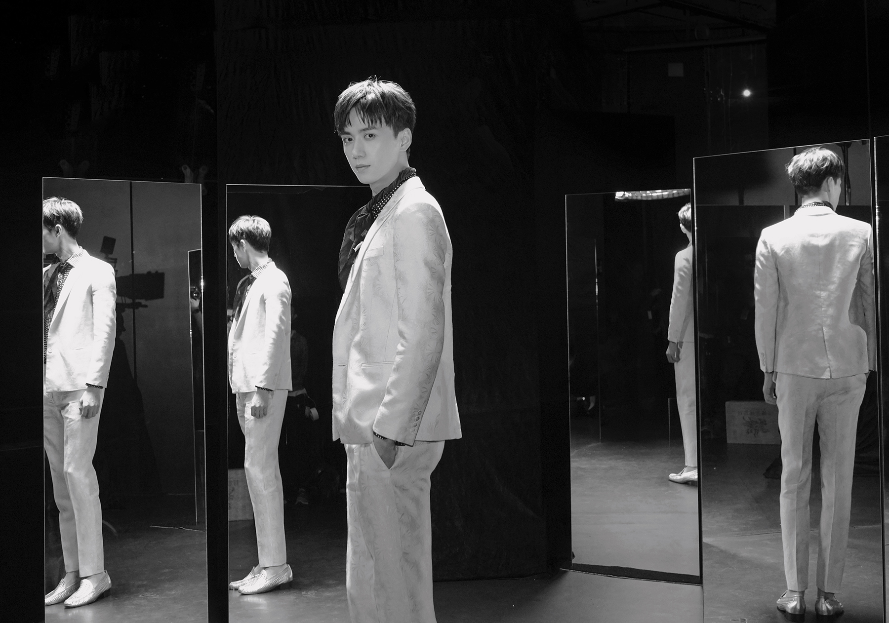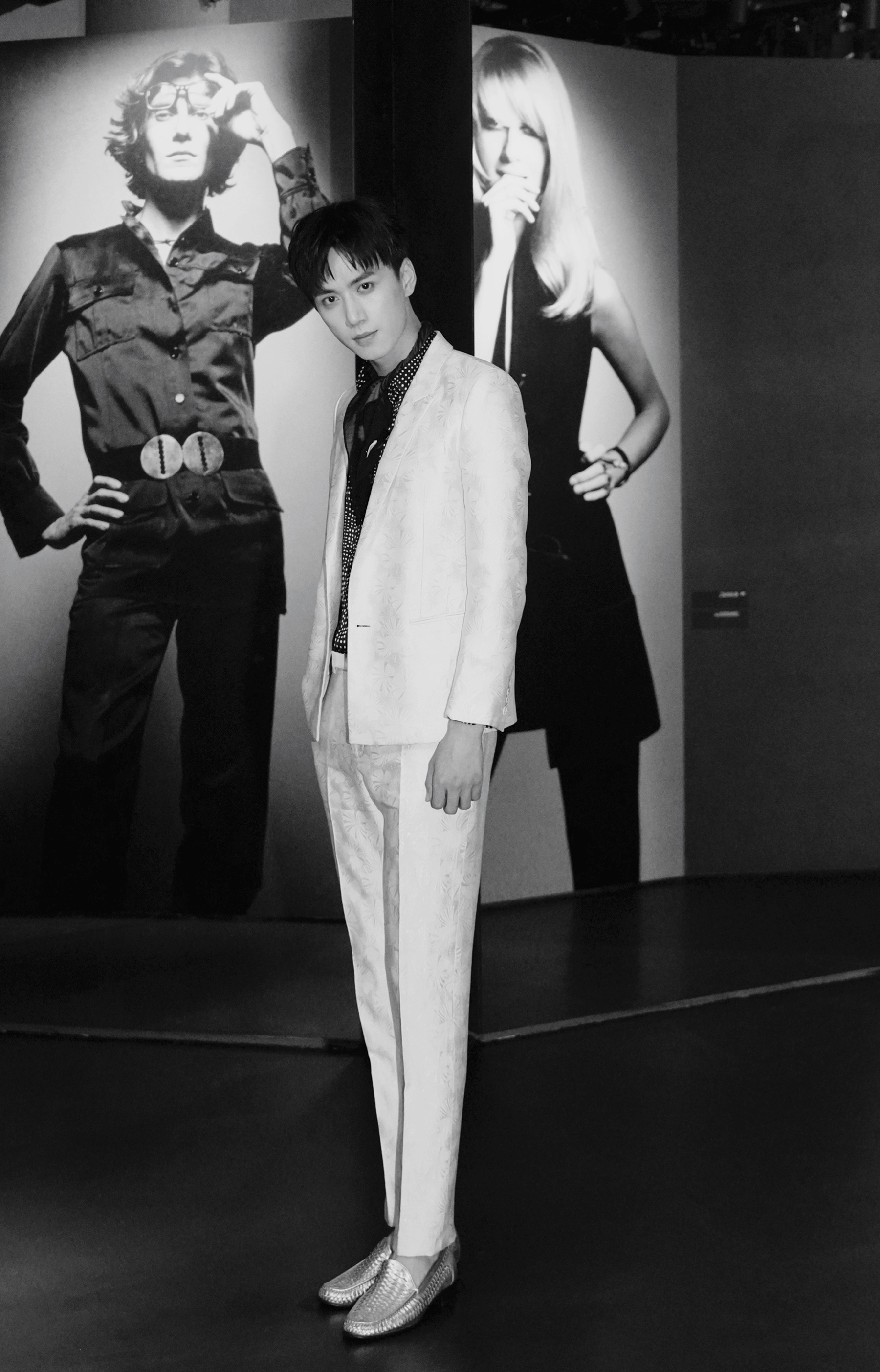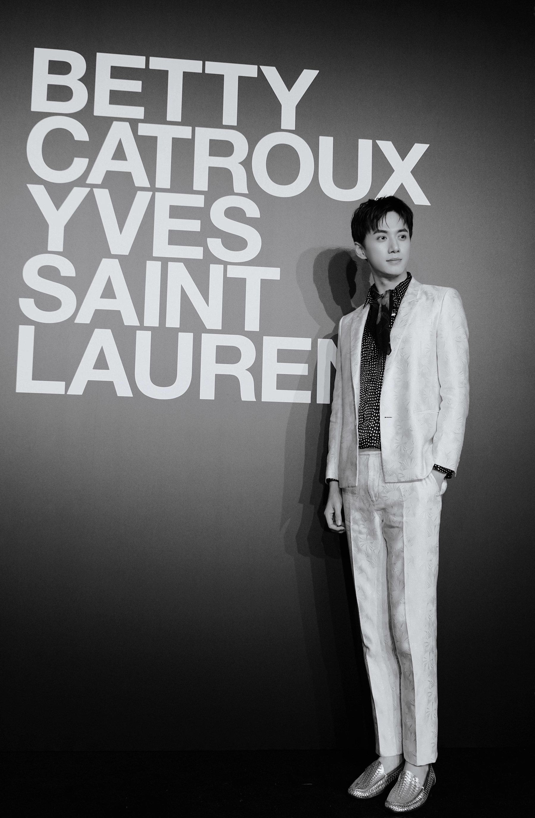 陈政阳以新生代实力青年演员身份,现身圣罗兰时尚展开幕酒会。他一身缎面印花白西装彰显其绅士魅力,搭配丝巾点缀谦谦君子的气质,整体温文尔雅,诠释高级时尚感。在这场先锋时装品牌的重大盛会上,走进国际大众的视线之中。