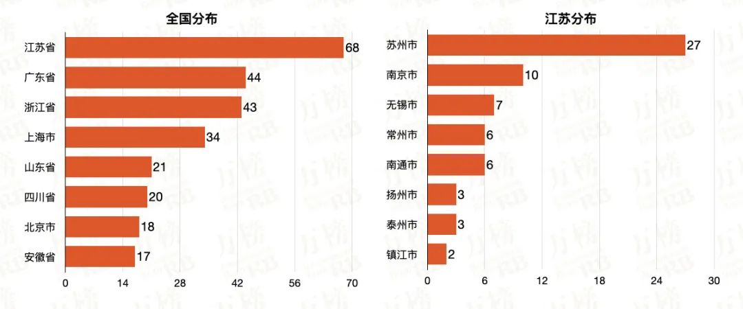 经过统计我们发现,高分子材料行业总部在江苏省的企业数量在全国各省排名首位,并和二三名拉开了不小的差距。在江苏省具体的城市分布来看,苏州市的数字亮眼,是比第二名到第四名的总和还要多。可以看出高分子材料行业是苏州市较为重要的战略布局之一。