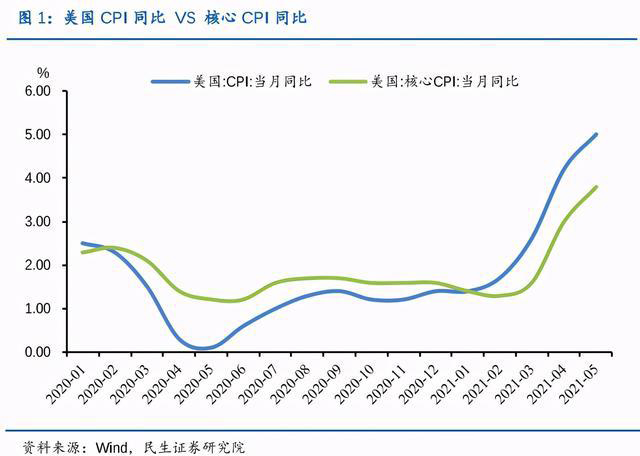 数据显示,美国5月整体CPI同比大涨5%,超预期的4.7%,增速创2008年8月以来最高;剔除不稳定的食品与能源价格的核心CPI年率同样高于预期,达3.8%,超市场预期3.5%,增速创1992年以来新高。