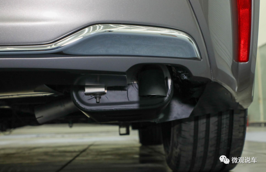 车子尾部轮廓比较圆润,线条比较柔和,给人感觉较为饱满,贯穿式尾灯造型时尚,边缘熏黑处理看起来更加酷炫,下方的雾灯为长条状竖向结构,增强了车尾的立体感,下包围处有银色材质装饰物,显得更为时尚。