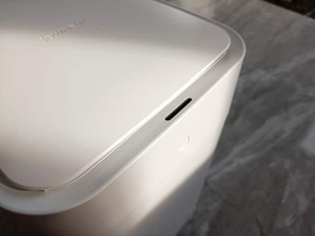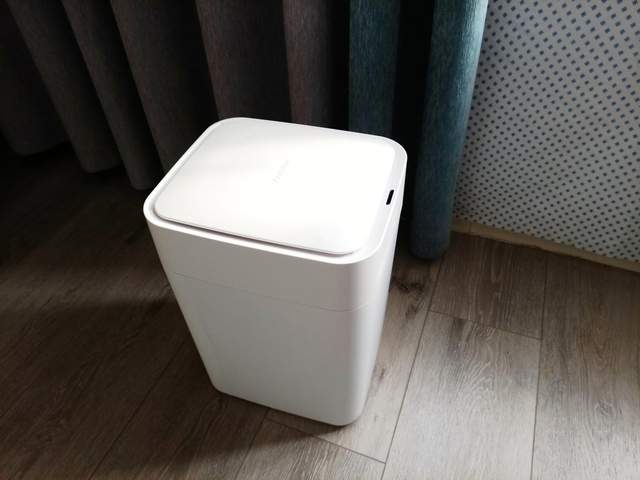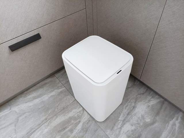 垃圾桶顶部的垃圾桶盖与垃圾桶能够严密贴合,而且使用了缓降技术,能够让每一次开合都安静而优雅。在顶部边框正中间是一个红外传感器,能够准确地探测每一个动作,实现智能开合。经过反复的试验,设置了一个非常人性化的感应距离:0~35cm,而且结合垃圾桶的高度,除了手部感应外,人的膝盖也能快速触发,免去弯腰的劳累。