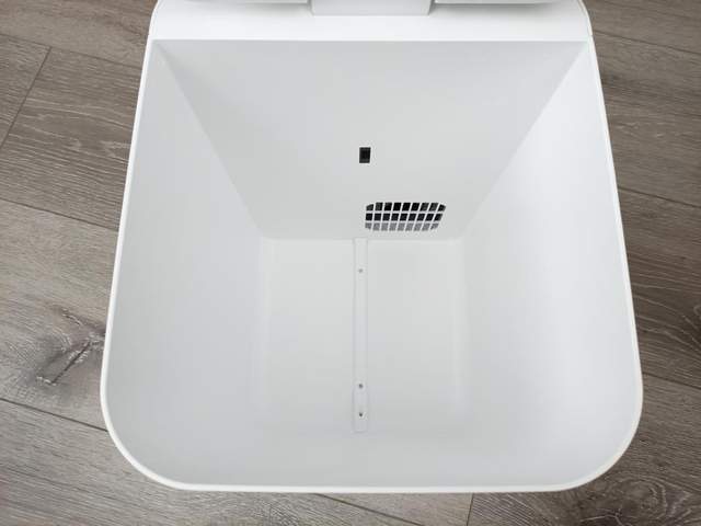 垃圾袋盒也有一个盖子,四角通过磁吸与垃圾桶相连,很容易就可以打开更换专用的垃圾袋。取出垃圾盒可以看到垃圾袋的封口装置,具体的工作原理应该是两个可移动的交叉电热丝,将垃圾袋口加热形成密封。为了更周全的考虑,拓牛垃圾桶配备了LED灯带,亮起后淡蓝色,即使在昏暗的地方,也能看清垃圾桶内的情况了~