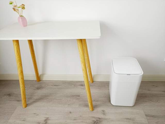 在外观方面,米白色的拓牛垃圾桶T1更显简约大方,哑光磨砂的ABS材质,手感舒适,更容易适应各种环境。在尺寸上,同样是24cm*31cm的底面和40cm的高度,身材小巧,摆放位置灵活。