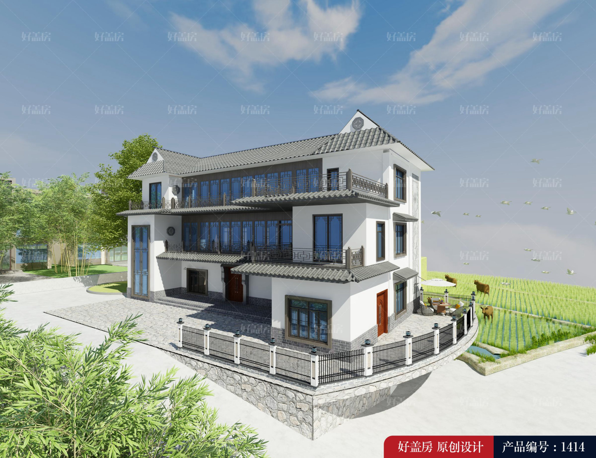 今天,我们选择了这款传统的带有院子的乡村别墅。让我们来看看吧!