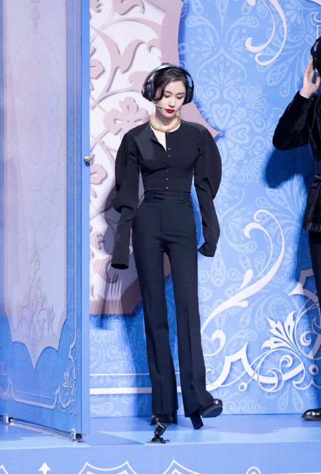 此外,王子文也青睐于拖地裤和高跟鞋这样的搭配组合,都可以将腿部线条自然顺延。