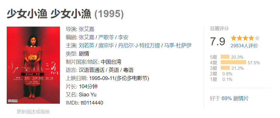 后来成了张艾嘉导演作品的里程碑之作,还让未曾在歌坛大火的滚石歌手刘若英,率先走上了国际影展的红毯,成为当时台湾地区公认的演技派。