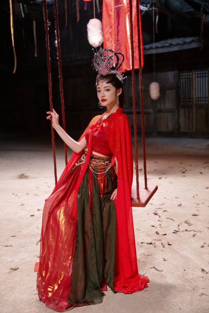 周洁琼完美还原蜘蛛精经典形象 穿红色古装氛围感满满