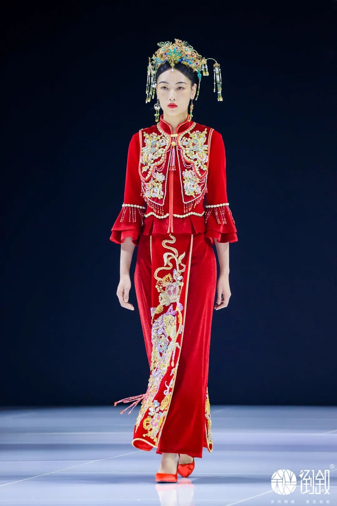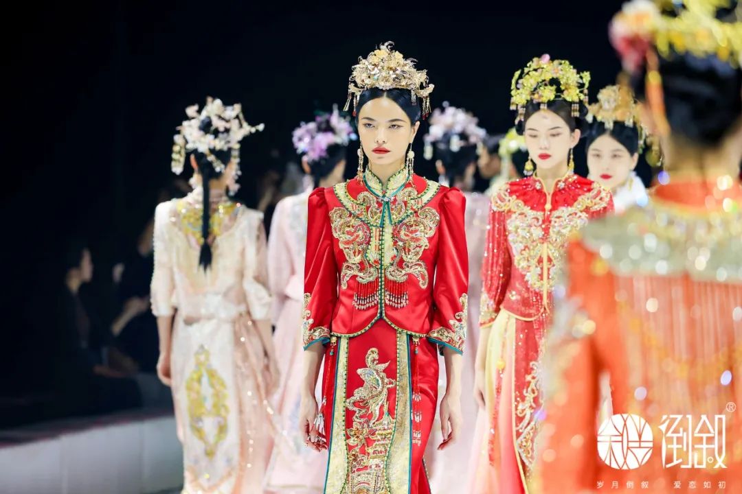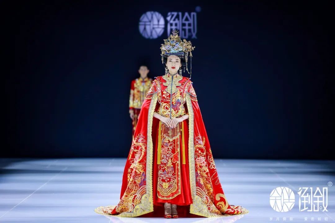 在本次倒叙秀场上,中国传统文化底蕴与现代时尚魅力交织汇聚,在传承与创新实践中,完成新中式嫁衣之美的升级蜕变,以一袭中国嫁衣,见东方女性风华,见泱泱中华文明,做中国新娘隆重而美好的见证。