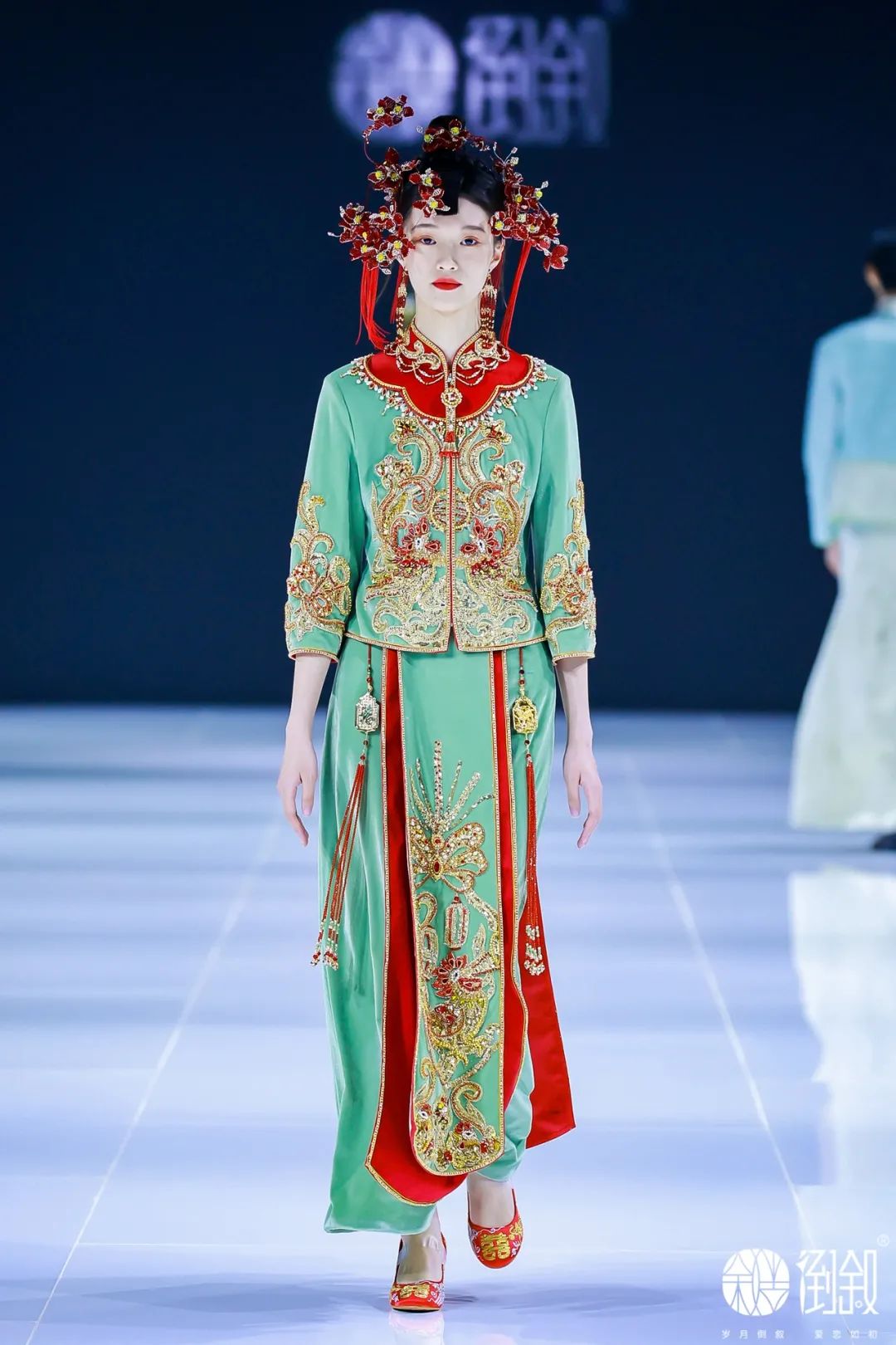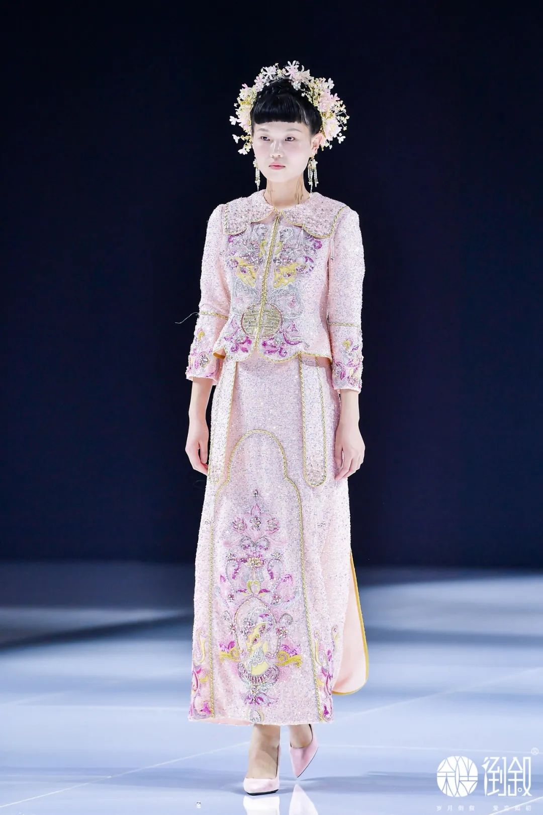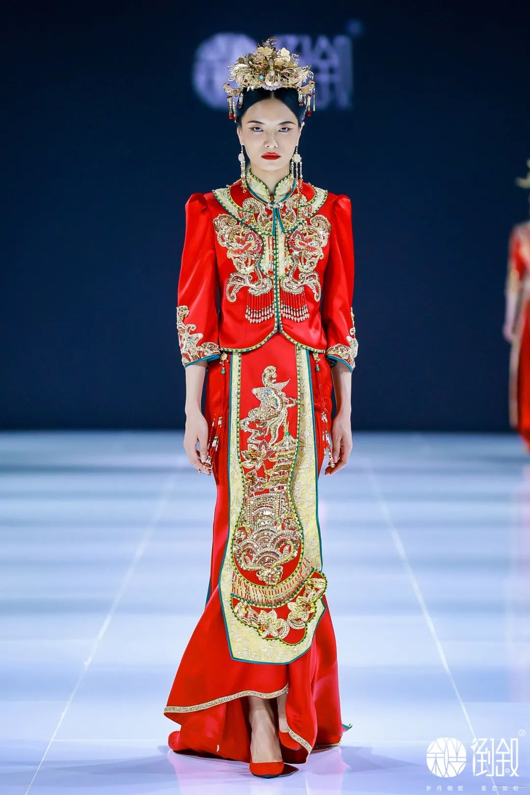 在本次倒叙秀场上,中国传统文化底蕴与现代时尚魅力交织汇聚,在传承与创新实践中,完成新中式嫁衣之美的升级蜕变,以一袭中国嫁衣,见东方女性风华,见泱泱中华文明,做中国新娘隆重而美好的见证。